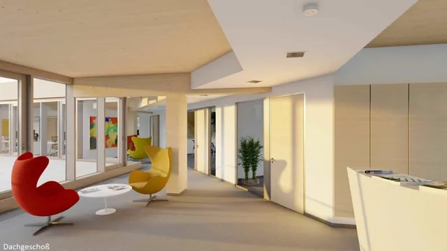 The office unit will be taken over in the shell construction. If a further expansion stage is desired, this can be agreed with the owner. The renderings already offer an insight into possible expansion stages.