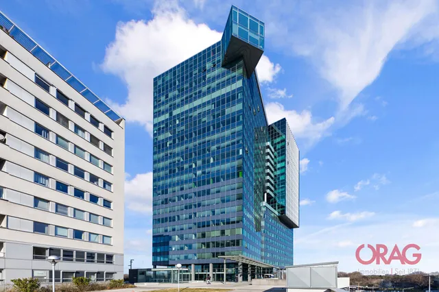 The building is structured by an unmistakable interplay of recesses and bay elements. Numerous terraces and balconies offer a breathtaking view of the city and the adjacent Danube Park. Generous glass surfaces also allow unique views from inside the building.