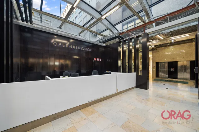 The Opernringhof is prominently located in the historic center of the 1st district directly opposite the Vienna State Opera. The building complex was built in 1955 to replace the historic Heinrichshof. On the edge of the inner-city pedestrian zone Kärntnerstraße directly opposite the opera house, the building boasts an exclusive location and address. Numerous stores for daily needs and a variety of restaurants provide an excellent infrastructure. There are excellent connections to Vienna's public transport network, with access to the Karlsplatz subway station, which serves as an inner-city transfer hub, directly opposite the main entrance. There are excellent connections to the higher-level transport network via the Ring.