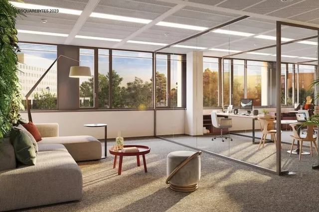 VILLAGE WORKS stands for maximum productivity, flexibility of use and space efficiency. With individual room layouts, smart sensor technology, an environmentally friendly energy supply and modern equipment that inspire you to achieve top creative performance and are perfectly tailored to the requirements of today's working world. The terraces facing the green inner courtyard also guarantee relaxing work breaks and social interaction in the fresh air. In this modern new office building, space is currently available from approx. 250 m², which can be expanded according to tenant requirements.
