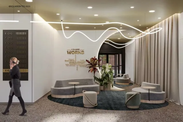 VILLAGE WORKS stands for maximum productivity, flexibility of use and space efficiency. With individual room layouts, smart sensor technology, an environmentally friendly energy supply and modern equipment that inspire you to achieve top creative performance and are perfectly tailored to the requirements of today's working world. The terraces facing the green inner courtyard also guarantee relaxing work breaks and social interaction in the fresh air. In this modern new office building, space is currently available from approx. 250 m², which can be expanded according to tenant requirements.