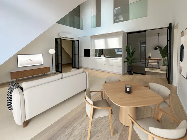 Inside, rooms unfold that impress with their modern design and high-quality materials. The outstanding furnishings of the apartments fulfill every wish: high-quality oak parquet floors, elegant carpenter's kitchens with Miele appliances with induction stoves, elegant bathrooms with natural stone and modern tiling, underfloor heating with district heating, fan coils in all apartments, a cellar compartment for each unit, common rooms such as bicycle and baby carriage storage rooms.