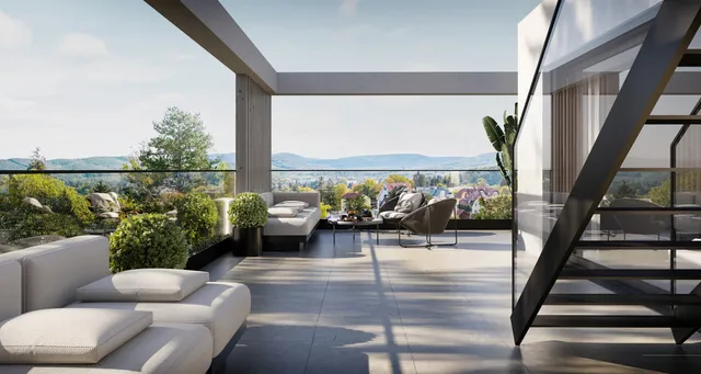 FURNISHED 3-room apartment with 17 m² luxury balcony surrounded by greenery NATURE-connected design LIVING at the gates of Vienna SECURE A KITCHEN VOUCHER FOR € 7,500 WHEN YOU BUY AN APARTMENT This designer new-build project in an exclusive Vienna Woods location consists of two modern villas with a total of 17 freehold apartments and offers everything the heart desires for living and opens up a true living and sports experience for nature lovers with countless leisure activities right on the doorstep in all seasons. Energy system at the cutting edge Heating & cooling by air heat pump in combination with energy-efficient underfloor heating Hot water preparation via a separate domestic hot water heat pump, which is integrated into the air heat pump system Heating requirement of 37.85 kWh/m²a Enjoy the fantastic view of the Vienna Woods from your new dream apartment with three rooms from the luxurious balcony or watch the sunset over dinner. The approx. 17 m² balcony offers a luxurious open space with a great view of nature for family and friends, extending the living area from the open-plan kitchen/living room. The two bedrooms also offer maximum relaxation value. Enjoy a sensational view of the greenery from the bedrooms with direct access to the balcony. Quality living with high-quality furnishings offers maximum living comfort: High-quality and stylish materials round off the modern green living. Large glazed areas allow plenty of daylight into the eat-in kitchen. The parquet flooring - oak plank - brings nature directly into your own feel-good oasis. In addition, many extra designs, such as the high interior doors measuring 2.20 m, create a special living ambience. Underfloor heating with individual room control in the living areas provides cozy warmth in winter and cooling in the summer months. Large glazed fronts with triple insulating glazing bring plenty of daylight into the living and sleeping areas. The sanitary area is fitted with porcelain stoneware. The bathroom has a modern shower and invites you to relax. The washbasin area is adorned with a wall mirror and an additional bar radiator for towels is always within easy reach. The adjoining toilet is also equipped with branded products.