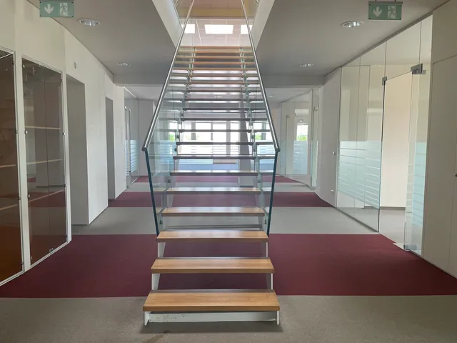 Around 2,100 m² of high-quality office space in a building constructed in 2003 is available to let with immediate effect. The space is spread over 3 floors and can be flexibly divided if required. Thanks to the open-plan concept and the high proportion of glass partitions, a pleasant, bright working atmosphere is ensured. A landscaped terrace in the inner courtyard invites you to linger.