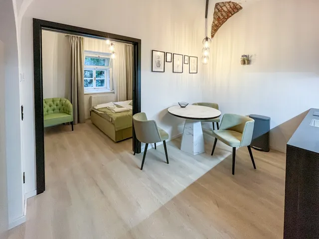 The building itself, a historical gem dating back to 1455, has been revitalized with great attention to detail. The comprehensive refurbishment combines old building fabric with high-quality, contemporary furnishings. Particularly impressive: the characteristic cross vaults, which give each apartment a very special atmosphere. Four exclusive units are currently available for (temporary) rental.