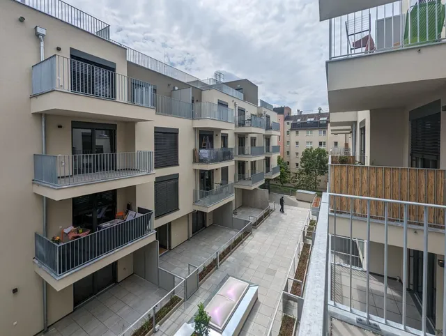 The low-energy building, constructed in 2023, is located adjacent to the centre of Simmering.