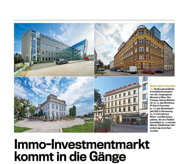 So gab es neben dem Wohnportfolio-Deal der Städtischen mehrere Deals um große Büroobjekte in Wien. Der Fonds GalCap Europe erwarb das 7.000 Quadratmeter große Laborgebäude Campus Vienna BioCenter, zwei private Investmentgesellschaft schlugen bei ähnlich großen und ebenfalls voll vermieteten Bürohäusern in Favoriten und Neubau zu. Bei letzterem Projekt war mit Thalhof Immobilien gleich jener Investor tätig, der Ende November auch für den größten Zinshauskauf des Vorjahres verantwortlich zeichnete – auch dieses private österreichische Immobilienunternehmen mit Fokus auf Wiener Häuser in Bestlagen investierte somit in den vergangenen Monaten rund 100 Millionen Euro in große Wohn- und Gewerbeobjekte.