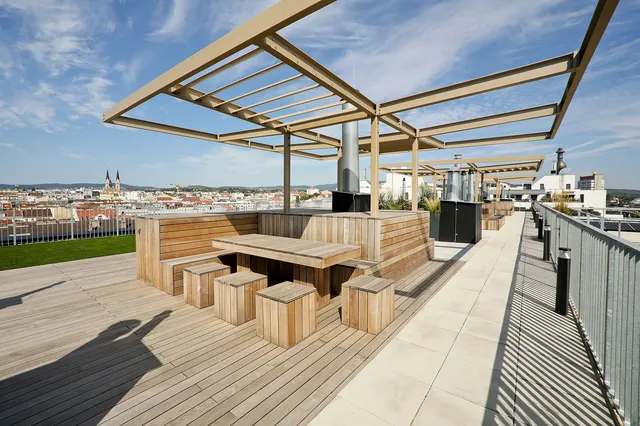 A fitness room, a communal room with kitchen, a shared office space, a sun deck, a bicycle repair room, a laundry room, a children's and youth playroom and a parcel room are available to tenants for general use.