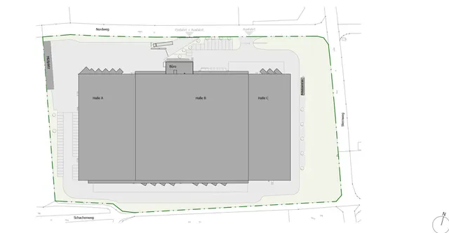 Im Zuge der Umbauarbeiten wird die bestehende Halle auch erweitert. Es wird die Möglichkeit geschaffen das Mietobjekt in bis zu drei getrennte Mieteinheiten zu unterteilen.
