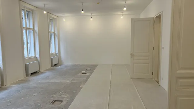 Derzeit wird das Jahrhundertwendehaus generalsaniert. Die Flächen stehen ab Q1/2026 zur Verfügung.