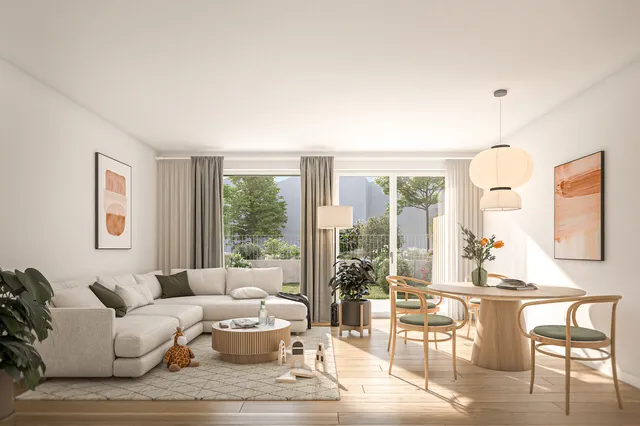Direkt in den ruhigen Innbereich der Anlage gerichtet liegt die 2-Zimmer-Wohnung im ersten Obergeschoß. Sie verfügt über eine 30 m² große Wohnküche mit einladenden Glasflächen und einem direkten Ausgang auf den ostseitig orientierten Balkon. Von hier aus blicken Sie auf den begrünten Pergolaweg.