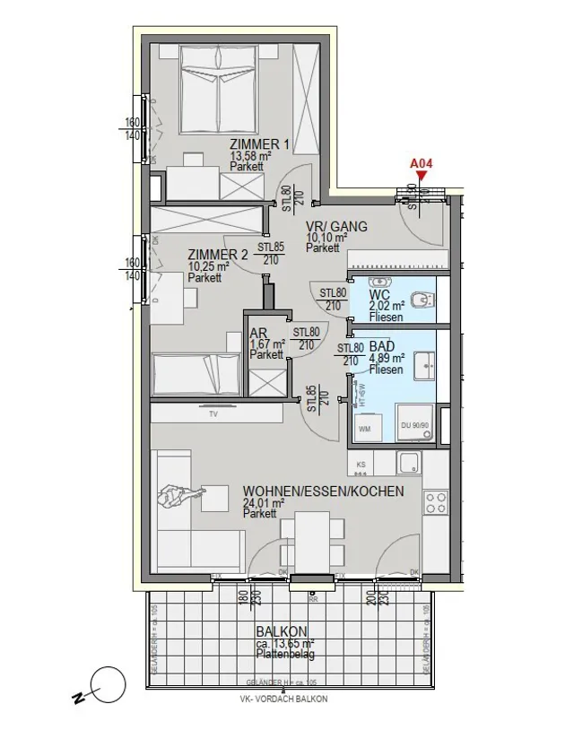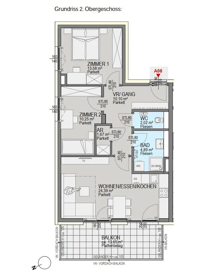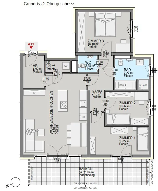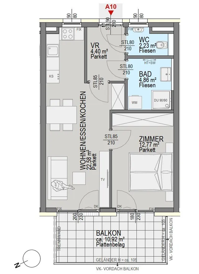 In der Waltendorfer Hauptstraße 55a wird ein modernes Wohnhaus mit 12 Eigentumswohnungen realisiert. Das Gebäude gliedert sich in Erdgeschoß, zwei Obergeschoße sowie ein exklusives Penthouse im 3. Obergeschoß. Die Wohnungen verfügen über Wohnflächen von ca. 46,96 m² bis 102,76 m² und bieten 2- bis 4-Zimmer-Grundrisse. Sämtliche Einheiten sind mit attraktiven privaten Freiflächen ausgestattet – in Form von Balkonen, Terrassen oder Eigengärten. Das Penthouse besticht insbesondere durch seine großzügige Dachterrasse. Jeder Wohnung ist ein Kellerabteil zugeordnet, zudem stehen Tiefgaragen- und Außenstellplätze zur Verfügung.