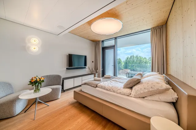 WOHNANLAGE: Das Projekt Lux Apartments ist energieeffizient (Passivhausstandard), gebaut aus hochwertigen Materialien (CLT-Paneele) mit Fokus auf Design. Im Gebäude befinden sich ein Aufzug, Waschküche mit Stauraum, Waschmaschine und Trockner sowie ein Kamerasystem.