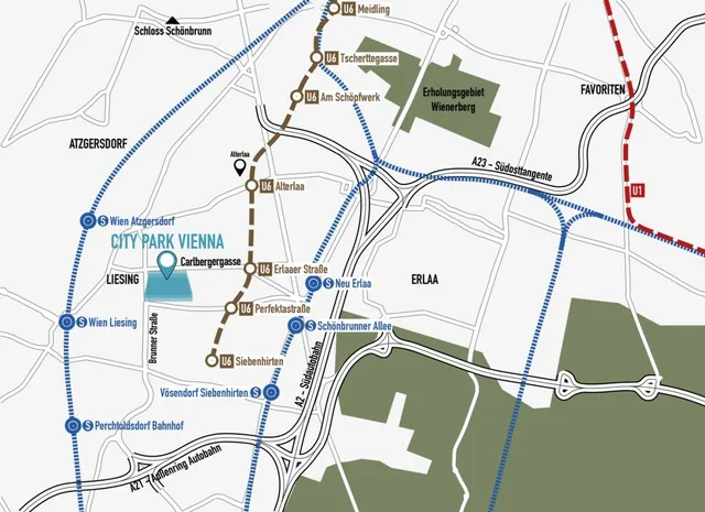 Bus: 60A/ 61A - Carlbergergasse S1/S2/S3 - Atzgersdorf & Liesing