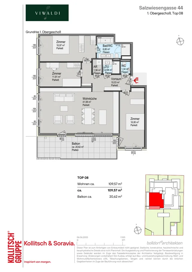 Das Wohnprojekt VIWALDI in der Salzwiesengasse thront leicht erhöht am westlichen Stadtrand Wiens – eingebettet in die sanften Ausläufer des Wienerwalds und mit einem imposanten Ausblick über die Dächer von Penzing. Hier, im 14. Bezirk, entfaltet sich eine seltene Symbiose aus urbaner Eleganz und naturnaher Ruhe.