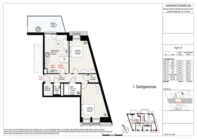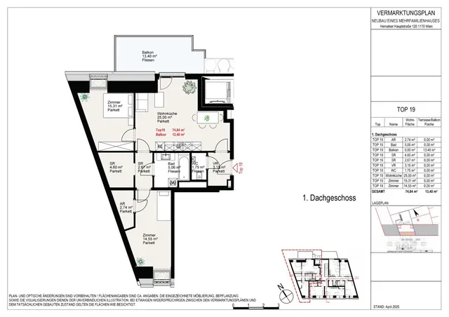 Außerdem stehen 4 PKW-Stellplätze im Innenhof zu einer monatlichen Bruttomiete von jeweils € 120,00 zu Verfügung.