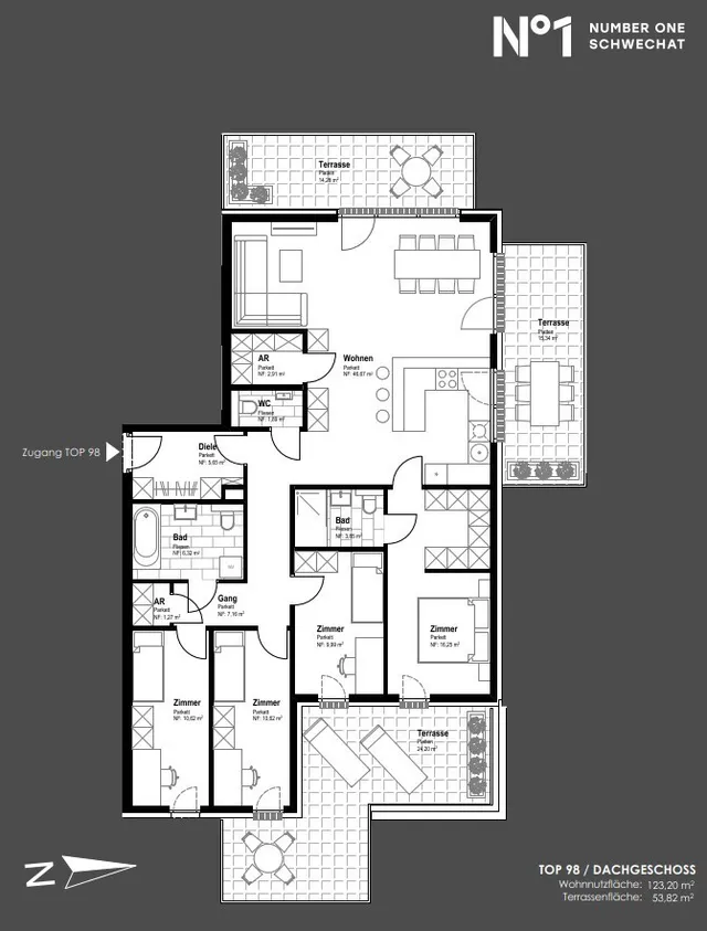 Die Wohnbereiche zeichnen sich durch innovative und sorgfältige architektonische Planung sowie durch die Verwendung hochwertiger Materialien aus.