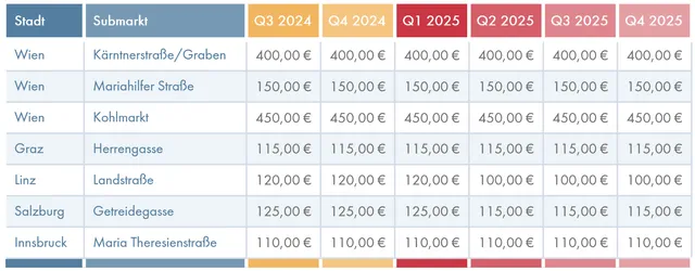 Der Wiener Tourismus blüht spürbar auf, mit Frequenzen auf High Streets annähernd auf dem Niveau von 2019, was auch die Attraktivität für Einheimische stärkt. Bei Neuanmietungen konzentrieren sich Einzelhändler auf Top-Lagen, während B- und C-Lagen unter wachsendem Druck stehen und alternative Nutzungen geprüft werden müssen. Retailer agieren zunehmend vorsichtig und benötigen mehr Zeit bei der Flächenauswahl. Vermieter müssen bei Vertragsverlängerungen stärker auf Mieterbedürfnisse eingehen, etwa durch Sonderkündigungsrechte, Staffel- und Indexmieten oder Baukostenzuschüsse. Der High-Street-Retail-Markt in Wien bleibt auf das „Goldene U“ und die Mariahilfer Straße fokussiert, während Bezirkslagen an Bedeutung gewinnen – die Mietpreise bleiben stabil.